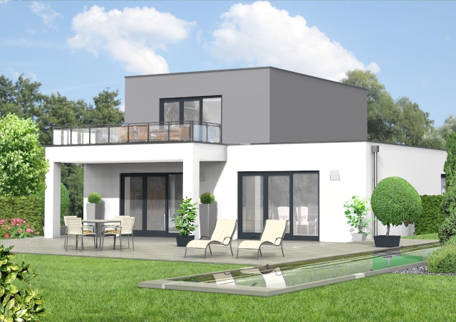 Die komplette Planung(Grundrisse, Ansichten, Schnitte, Bautragspläne), Mengenberechnung, Kalkulation und Visualisierung dieses Hauses wurde erstellt mit der Software Bauset-Hausplaner.
