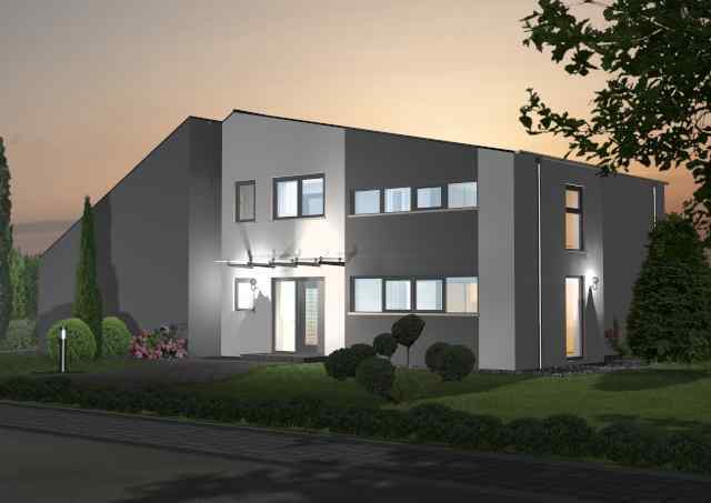 Die komplette Planung(Grundrisse, Ansichten, Schnitte, Bautragspläne), Mengenberechnung, Kalkulation und Visualisierung dieses Hauses wurde erstellt mit der Software Bauset-Hausplaner.